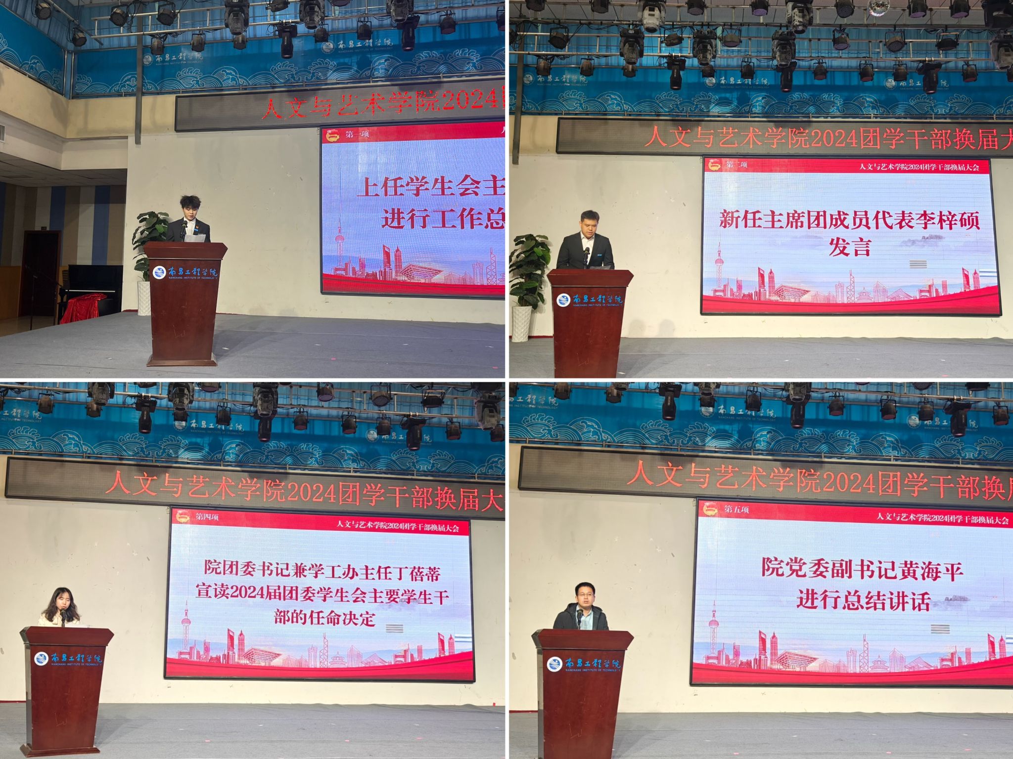 随后,黄海平为2023届团委学生会主要学生干部颁发聘书,丁蓓蒂宣读了2024届学生干部的任命决定。最后,黄海平发表致辞,他高度评价了过去一年中团学成员们为学院发展做出的贡献,并对新一届学生会寄予厚望,希望他们能够继续发扬优良传统,勇担时代使命,积极开拓创新,为学院的发展和同学们的成长贡献青春力量。