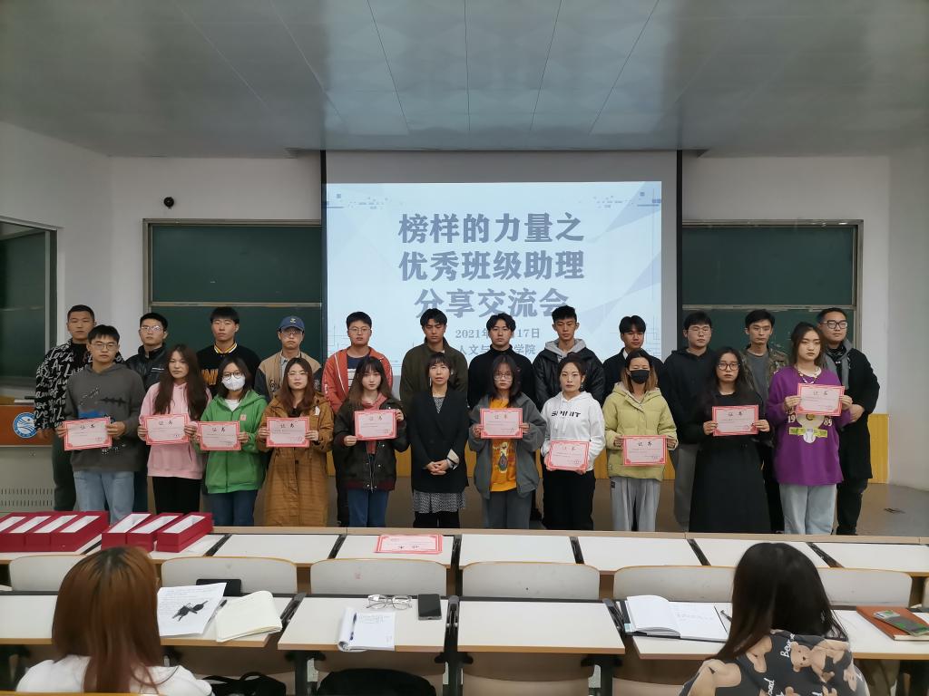 会议伊始,班级助理代表谢功炫表示,非常感谢各位老师两个月以来对班助工作的大力支持,感谢全体21级新生对班助工作的积极配合,同时他希望21级新生能够继续奋斗、勇往直前。接着,班级助理代表马梦一分享了自己作为班助的感受。她认为班助是一份十分有意义的工作,通过这份工作可以体验到大学生活里不一样的精彩。新生们朝气蓬勃、奋发向上的精神时刻感染着自己。班助工作虽辛苦但却充实而暖心,在工作中既有辛勤的付出,也有温暖的收获,赠人玫瑰,手有余香,这两个多月虽然短暂,但永远是班级助理们和新生们最珍贵的记忆。最后,丁蓓蒂为优秀班级助理进行颁发证书以及合影留念,并由衷的感谢班级助理对学院的付出,同时希望我院同学能向优秀班级助理学习,努力成为一个优秀的人。