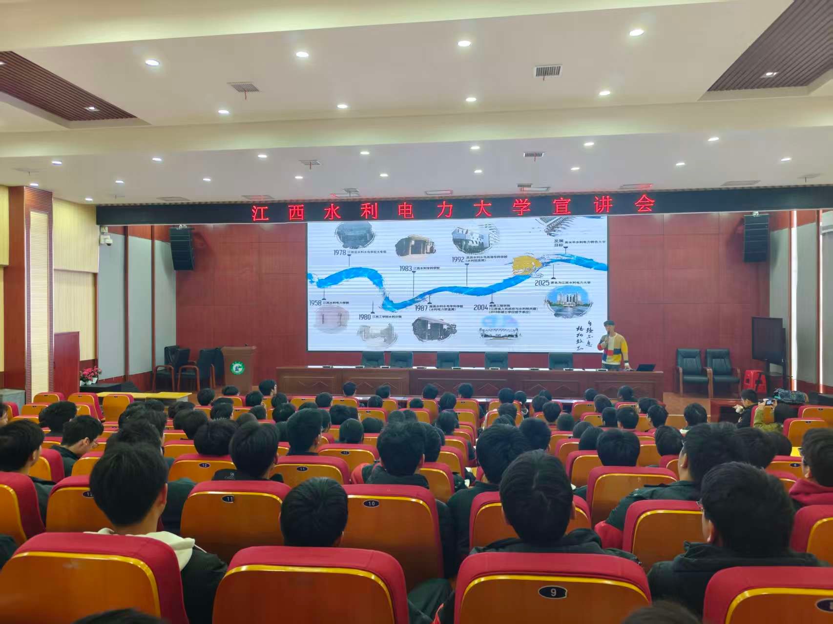 活动中,许宁老师详细介绍了我校悠久的办学历史与鲜明特色以及人文与艺术学院的学科优势与培养理念。黄海平则紧扣高考动态,深度解读了志愿填报策略与最新政策走向,并结合职业生涯规划理论,为同学们现阶段的学习备考提供了清晰务实的建议。现场互动频繁,反响热烈。与会学生纷纷表示:“今天的科普讲座分享非常及时,让我们对江西水利电力大学校史校情有了更加深入的了解,清晰认识到大学专业选择重要性,也明确了接下来复习备考方向。”(文/图 兰龙焱、许宁)