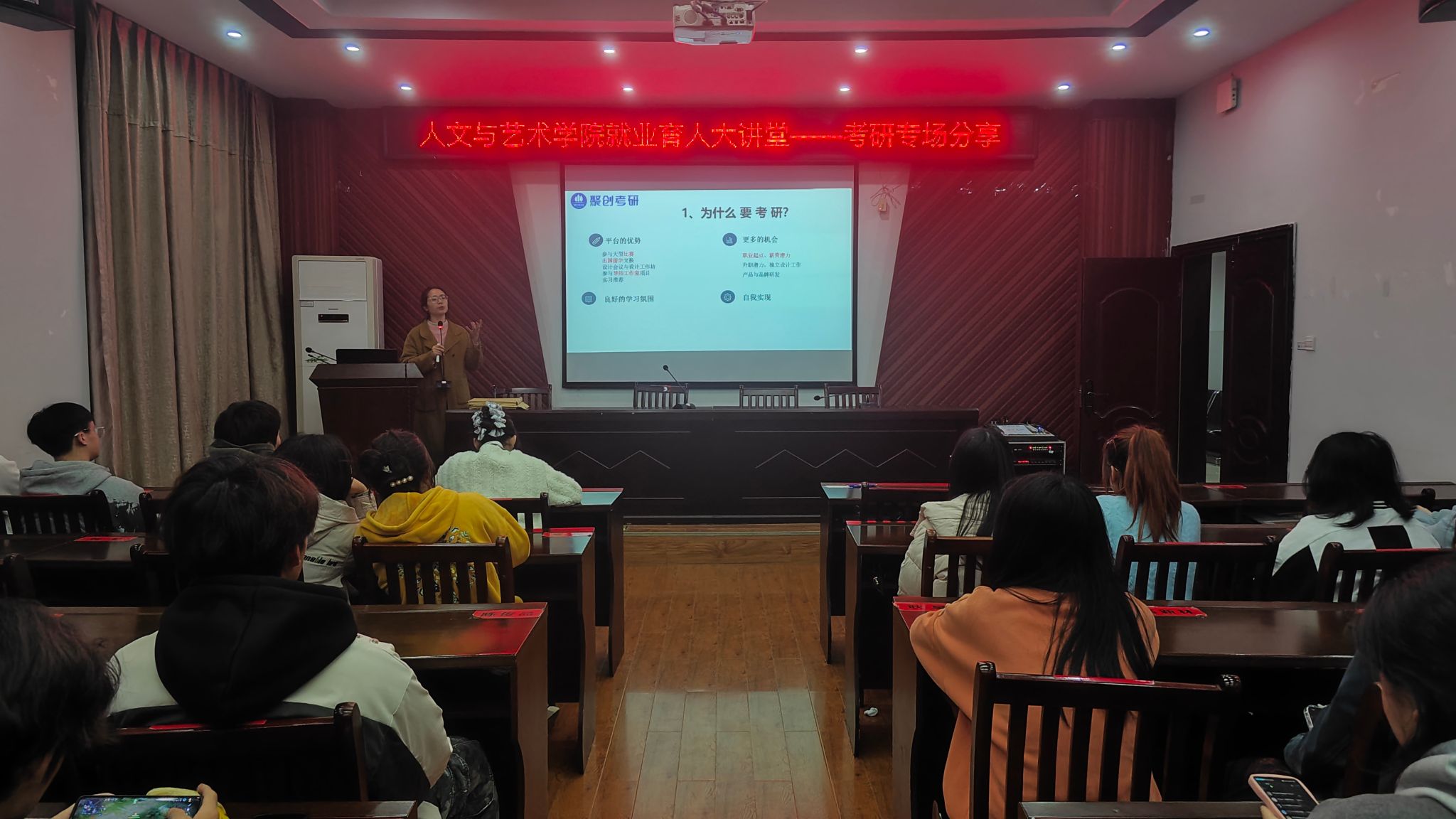 为进一步提升我院2024届毕业生考研备战复试的信心和决心,人文与艺术学院于3月21日举办考研复试及调剂专场分享交流会。学院就业辅导员及50余名考研毕业生参加,分享会邀请聚创考研刘艳艳老师担任主讲嘉宾。