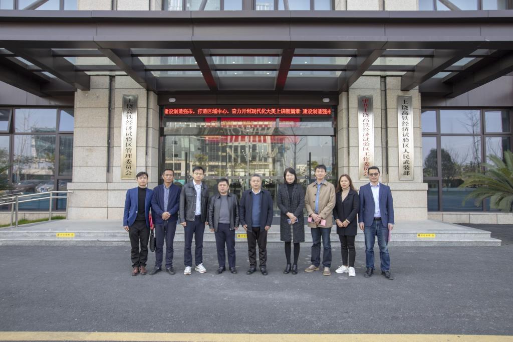 随后,殷安全一行走访了上饶高铁经济试验区。他希望在与试验区花脸数字集团合作的基础上,能够充分发挥高校人才资源优势和试验区企业实训培养优势,实现校政、校企资源有机结合和优化配置,全面深化产学研用合作,助力地方经济社会发展。姚晗代表试验区管委会对殷安全一行表示欢迎,希望能够与南昌工程学院深入合作,携手打造高层次人才产业园,为试验区数字经济产业提供人才硬核保障。