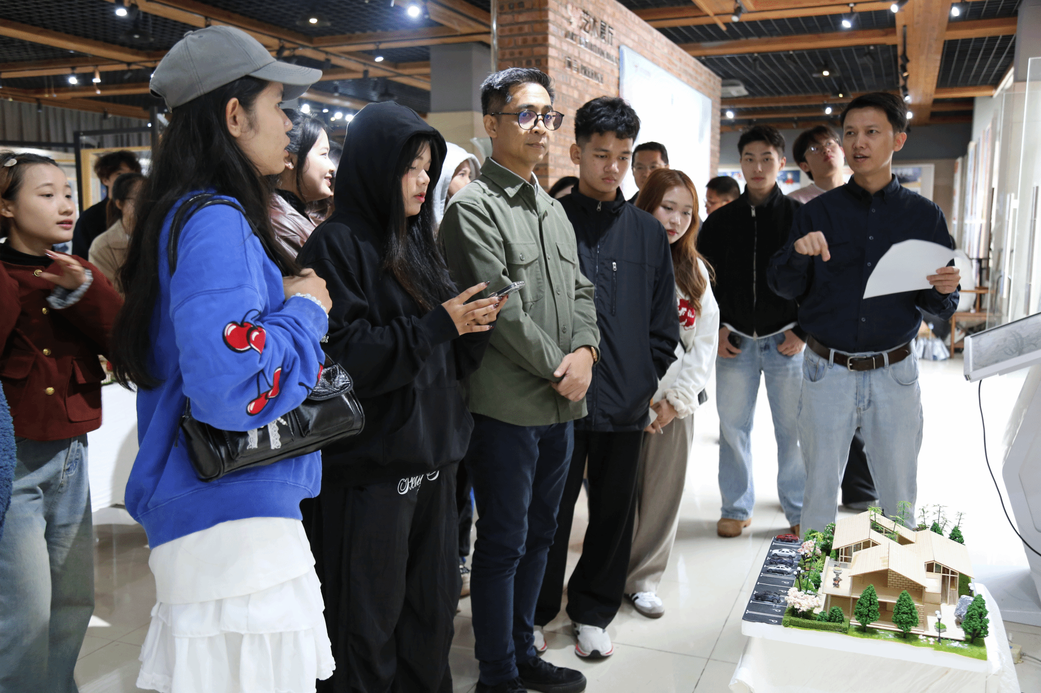 随后的座谈会上,双方围绕“地域文化赋能艺术教育”展开讨论。我院教师分享了“采风+创作+展览”的实践教学模式,泰国师生则介绍了其本国高校写生课程中的应用案例。代表团Panu Suaysuwan教师表示,赛事作品的专业水准与黔阳采风作品的文化温度令人印象深刻,为两校实践教学提供了宝贵参考。此次参观交流不仅让泰国师生直观感受到中国艺术的多元魅力,更为两校搭建了专业对话的桥梁。参加活动的院领导张记刚表示,未来将继续推动建立两校艺术专业学生联合创作项目,以艺术为纽带深化中泰文化交流。