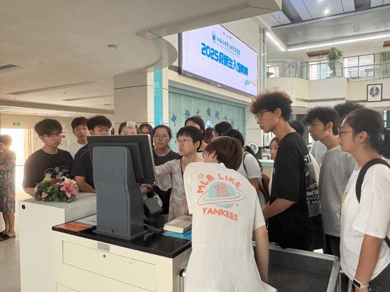 9月28日,2025级新生以班级为单位在图书馆观看入馆教育专题视频,初步了解了图书馆藏分区、开放时段、文献检索方法及借阅规则。学院志愿者进行自助借还机实操教学,从校园卡感应登录到借阅信息确认及突发异常处理,都进行了细致的讲解。此外,志愿者带领新生走进蔡超美术馆,感受校园深厚的文化艺术氛围。