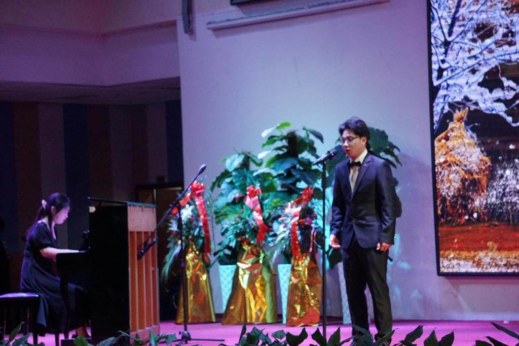 本次音乐会为声乐专场。王千慈演唱的经典新疆民歌《可爱的一朵玫瑰花》点燃全场。陈朵王洁黄敏赵余杰龙君婷陈朵李赛楠王洁分别带来女生独唱《梅娘曲》《海上女兵》《二月里见罢》《你来了》《醉了千古爱》《一抹夕阳》《荷花梦》《母亲河,我喊你一声妈妈》邹嘉浩王千慈分别演绎男生独唱《三套车》《杨白劳》。同学们深情的演唱、充满魅力的嗓音和专业的舞台表演力,赢得观众热烈掌声。女生小组唱《声声慢》将本场音乐会的气氛推向高潮音乐会在合唱《明天,你好》流畅柔美的旋律中结束。(/龙君婷 /李兆阳)