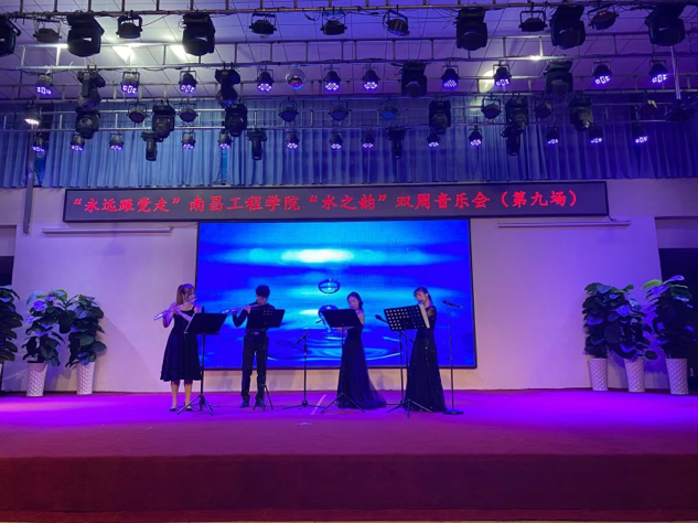 2021年5月14日,由教务处、党委宣传部、校团委、学工处、人文与艺术学院共同推出的“永远跟党走”——南昌工程学院“水之韵”双周音乐会(第九场)于大学生活动中心举行。本次音乐会节目形式多样,内容丰富,现场观众反响热烈,掌声不断。