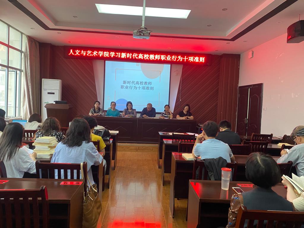 5月11日下午,学院党委书记熊华林在艺术楼A230会议室组织全院教师集体学习《新时代高校教师职业行为十项准则》。