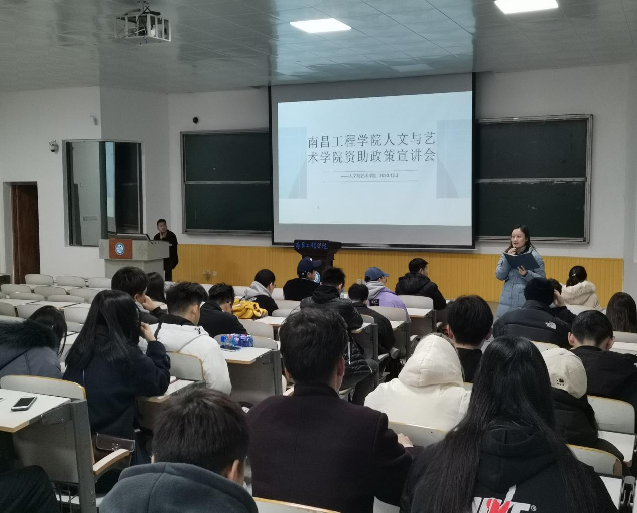为贯彻落实高校资助政策,做好精准资助和资助育人工作,人文与艺术学院于12月3日在教学南楼C105教室召开了资助政策宣讲会。本次活动邀请我院团委副书记丁蓓蒂以及辅导员张淑华进行讲解,我院各年级班长、团支书以及学生会全体学生干部共同参加了本次宣讲活动。