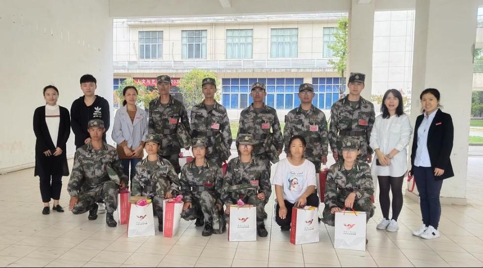 2020年10月14日上午,人文与艺术学院党委副书记王锐、组织员蒿佳杭、团委副书记丁蓓蒂及辅导员黄一诺、张淑华,于艺术楼架空层慰问九营(暨人文与艺术学院20级新生所在营)带训教官肖宝森等人。王书记详细询问了各班军训工作情况,肯定了训练成果,希望班主任和教官们严格要求、合理安排、科学施训,在教会学生军事技能的同时,注重培养学生吃苦耐劳、严守纪律的意志品质和积极向上、团结协作的团队精神。(文/图 廖东海)