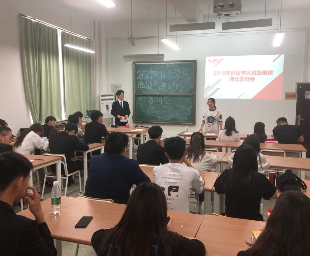 参加本次优良学风班级创建活动的有17、18级共21个班级。答辩前,王锐副书记指出各班创建方案的制定需动员班级每位同学参与其中,方案要详细具体,操作性强。此次评比答辩活动,采用PPT和视频相结合的展示方式。答辩过程中,各班代表分别根据本班的班级现状,提出了优良学风班级的创建目标以及创建措施,并对预期效果进行了展望。评委老师对创建方案中存在的问题提出了疑问并给予了具体的建议。