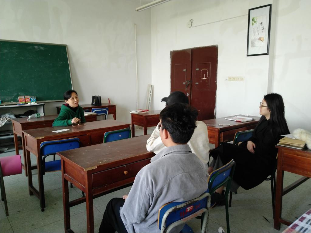 4月7日下午在四栋活动室,人文与艺术学院党委副书记王锐、团委书记蒿佳杭为院辩论队开会,鼓舞士气。