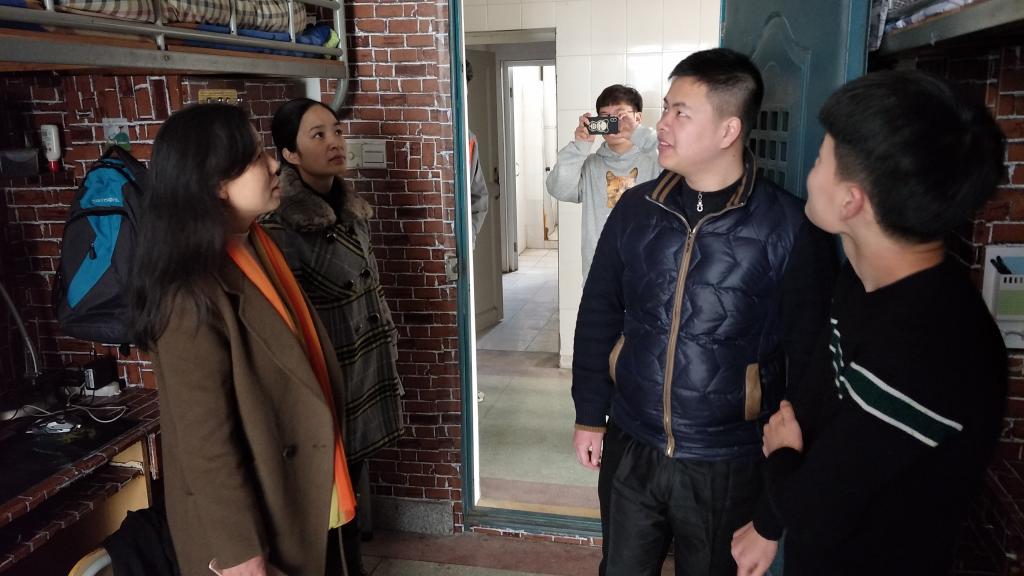 首先,学院协助楼栋对整个楼栋的学生宿舍和公共区域进行了卫生检查和安全隐患排查,同时排查学生到校情况,王书记重点针对宿舍内的吸烟情况、插座和电线等布线情况进行排查,对违章电器等进行了查缴,同时教育同学们保持良好的宿舍环境和生活习惯,为自己也为他人创造良好的生活环境、培养健康身体、保证安全学习。其次针对学生宿舍在假期进行了重新粉刷的现状,学院鼓励学生要有主人翁的精神,爱社区就要像爱护自己的家一样,并组织学生开展志愿服务活动,主动承担起打扫公共区域卫生的责任。(文/费婕 图/孙则光)