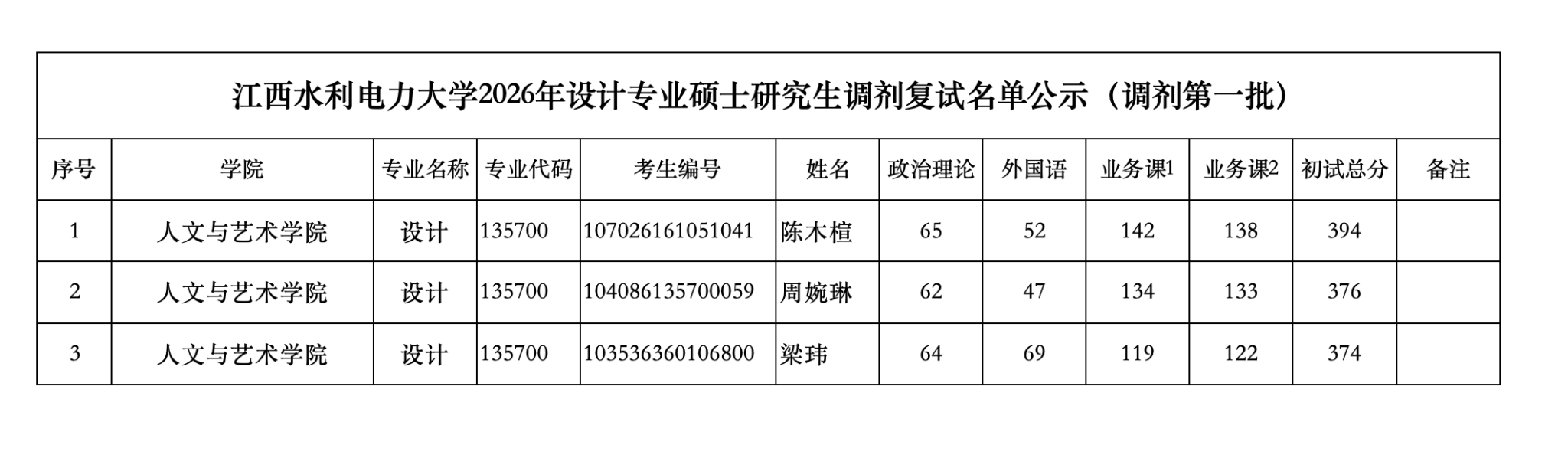 江西水利电力大学人文与艺术学院2026年硕士研究生调剂复试名单公示