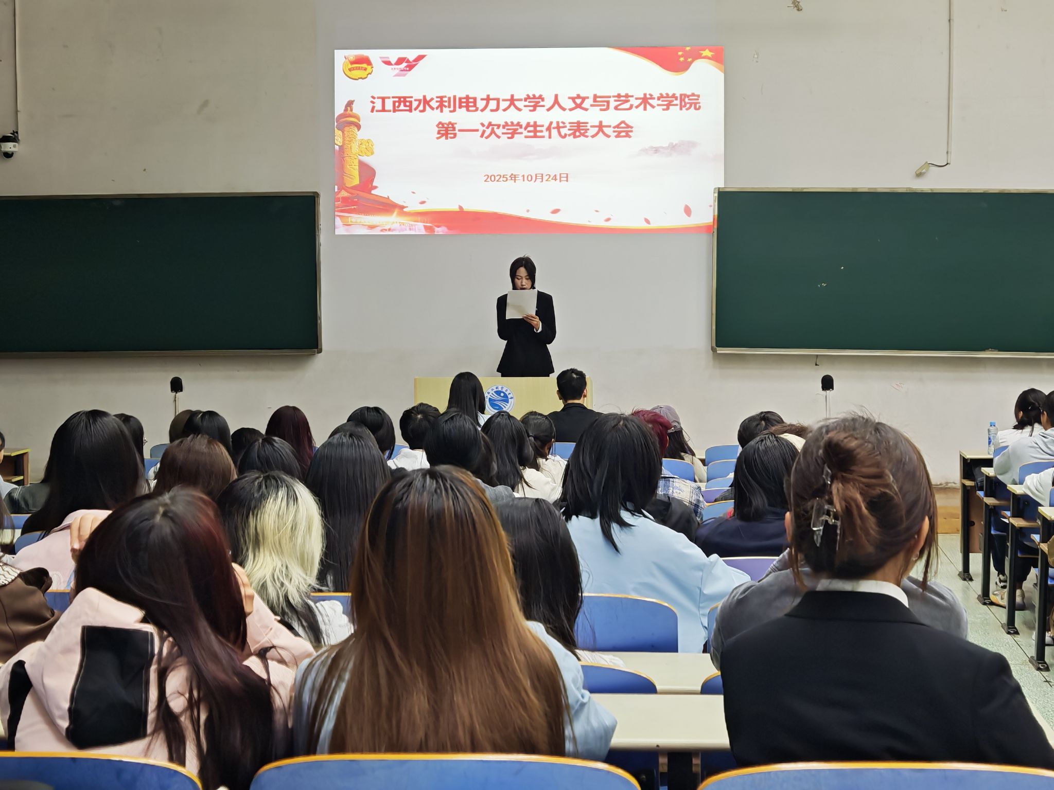 为总结学院学生工作成果与经验,明确未来发展方向,选举产生新一届学生组织领导机构,10月24日,江西水利电力大学人文与艺术学院第一次学生代表大会隆重召开。学院分团委书记兼学工办主任袁雅思老师、校学生会主席团成员、第十四届学生委员会部分委员及全院167名学生代表出席本次大会。