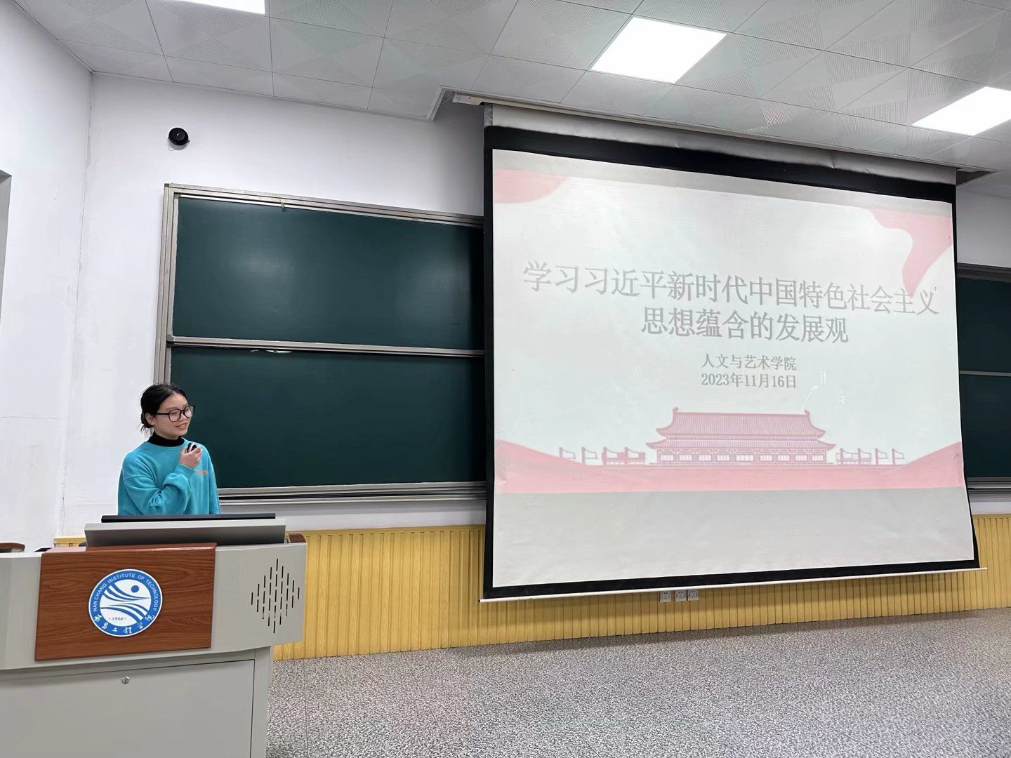 为深入学习贯彻习近平新时代中国特色社会主义思想主题教育,人文与艺术学院于2023年11月16日在南教学楼C204开展学习习近平新时代中国特色社会主义思想中蕴含的发展观主题教育。会议由我院分团委学生副书记刘薇主持,带领我院青年团员学习。