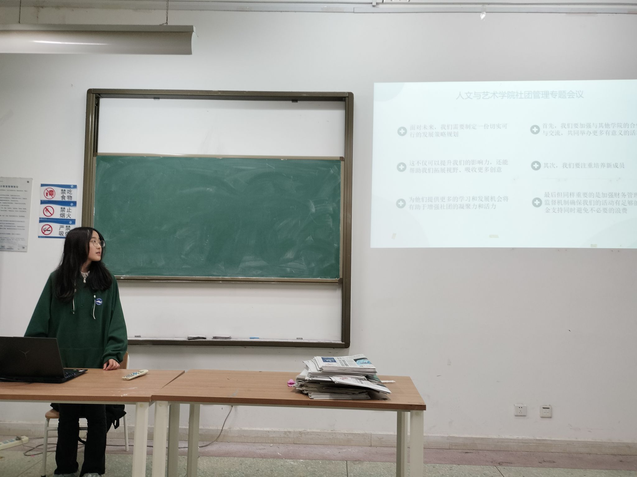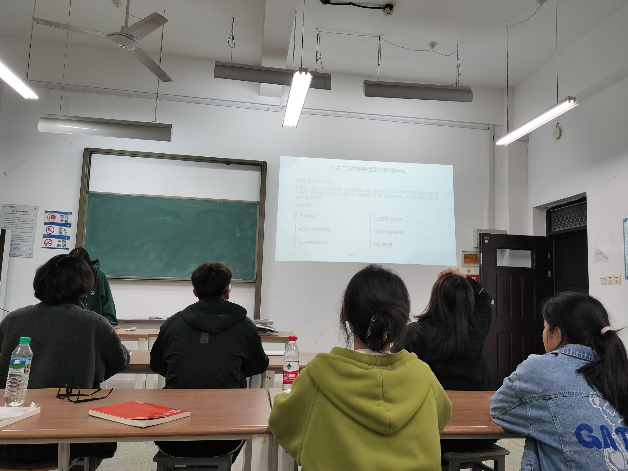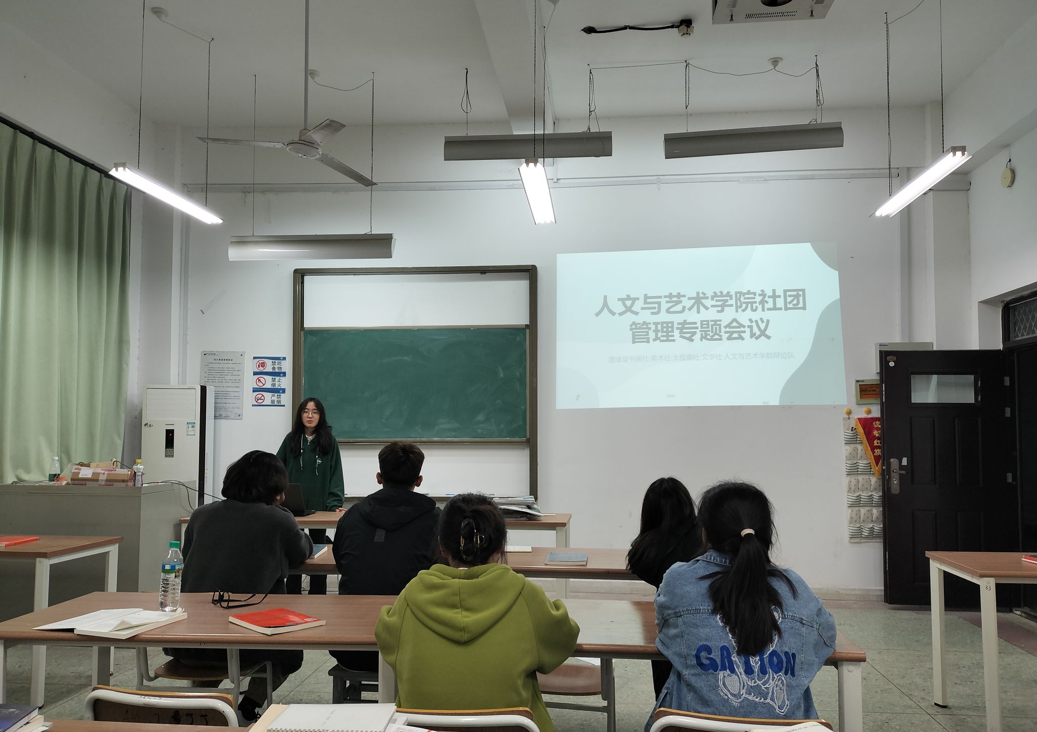 11月22日,人文与艺术学院于艺术楼A319举办了一场以“深化社团管理,推动各社团之间交流合作”为主题的专题会议。参与会议的有墨缘书画社、人文与艺术辩论队、文学社、美术社以及太极扇社五个社团,此次会议旨在通过提升社团管理水平,丰富学生课余生活,增强人文与艺术氛围。