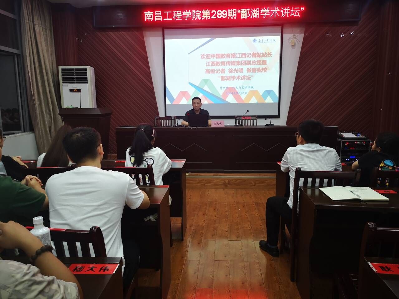 近日,中国教育报江西记者站站长、江西教育传媒集团副总经理、高级记者徐光明做客我校第289期“鄱湖学术讲坛”,在艺术楼A230会议室作题为《如何提高媒体素养》学术报告,人文与艺术学院师生共100余人聆听。
