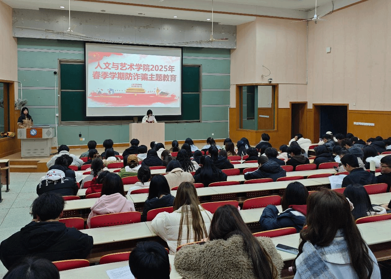 2月27日晚,为深化校园反诈教育,筑牢学生安全防线,人文与艺术学院开展了2025年春季学期防诈骗主题教育宣传,学院全体学生干部参加。
