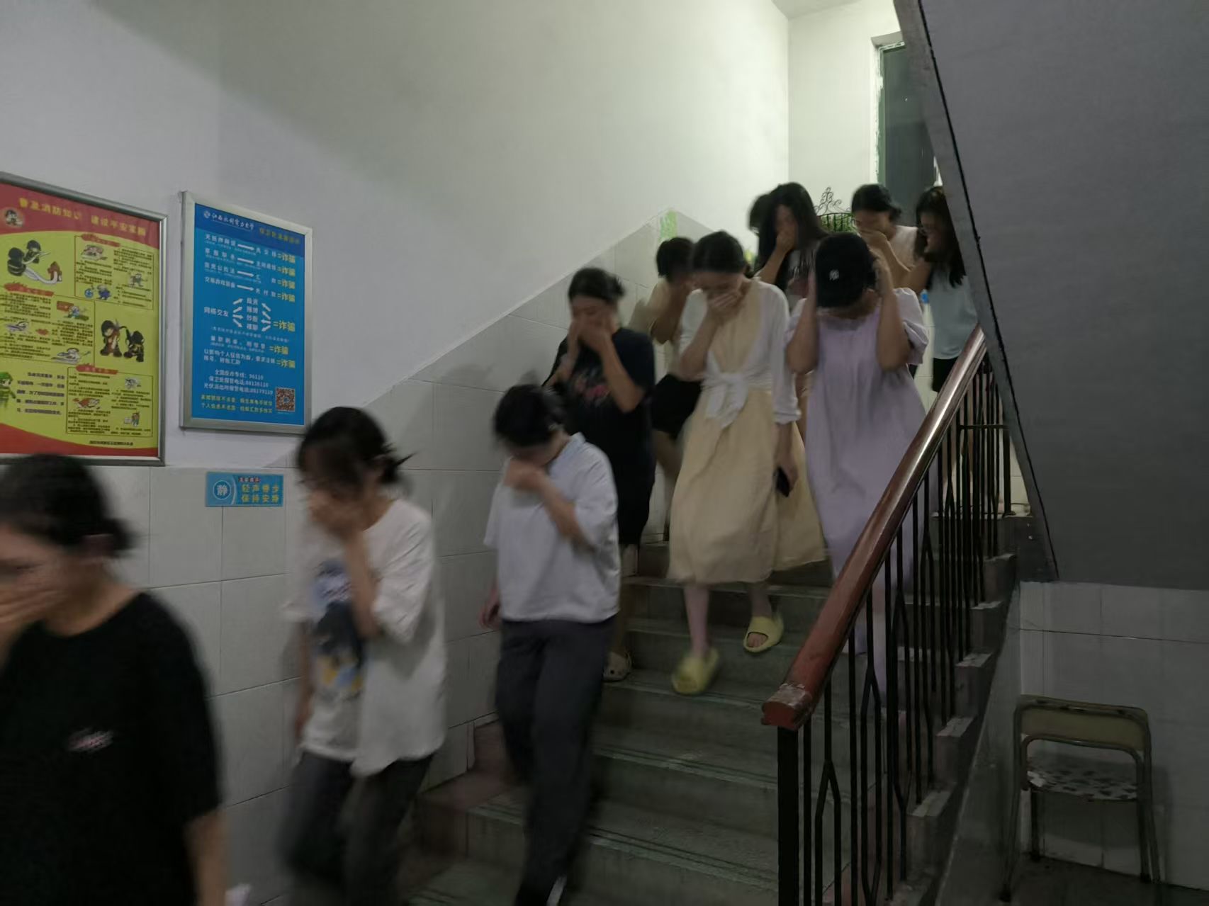 学院在学生宿舍4栋和5栋组织开展防灾减灾应急演练活动。演练模拟了宿舍突发地震和火灾的场景,在学院辅导员的引导下,学生按照“伏地、遮挡、手抓牢”原则紧急避险,迅速捂住口鼻,低姿弯腰,按照预定疏散路线,有序地从宿舍内撤离。此外,还通过在宿舍公共区张贴防灾减灾宣传海报、发放宣传手册等形式,向学生普及地震、火灾等灾害的应急避险知识和自救互救技能。